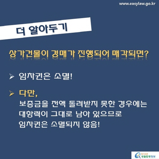 자세한 법령정보가 궁금하다면, 찾기 쉬운 생활법령정보 상가건물 임대차 콘텐츠에서 확인할 수 있습니다.